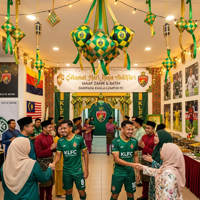 hari raya greetings with soccer ball hanging as ketupat from a soccer club