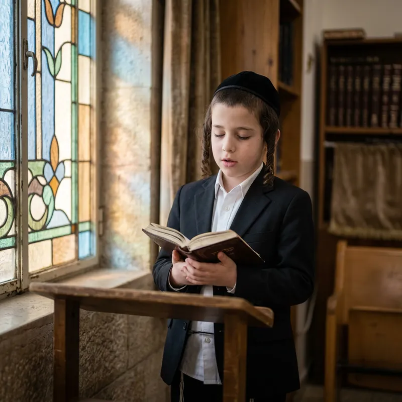 Hasidic Jewish Boy Engaged in Prayer