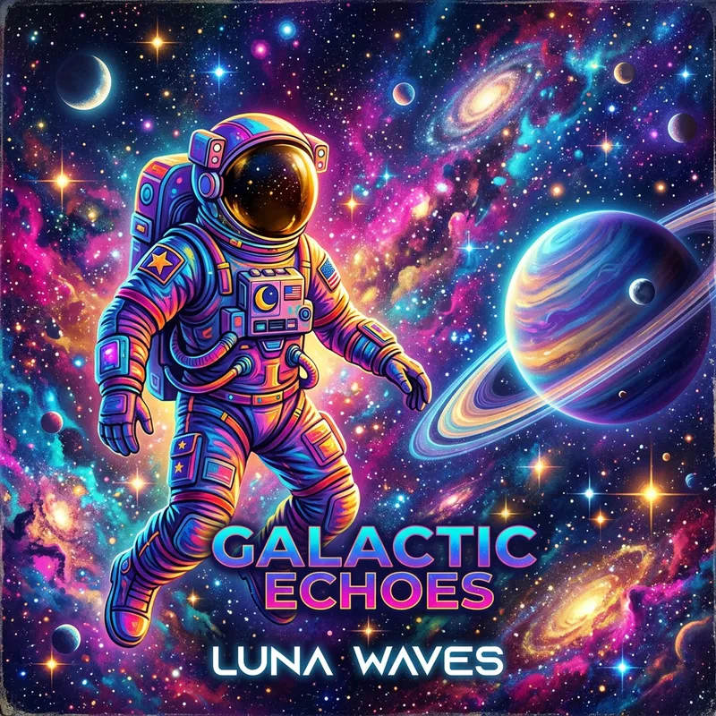 Create a cover featuring a colorful astronaut among stars and planets for a song cover.