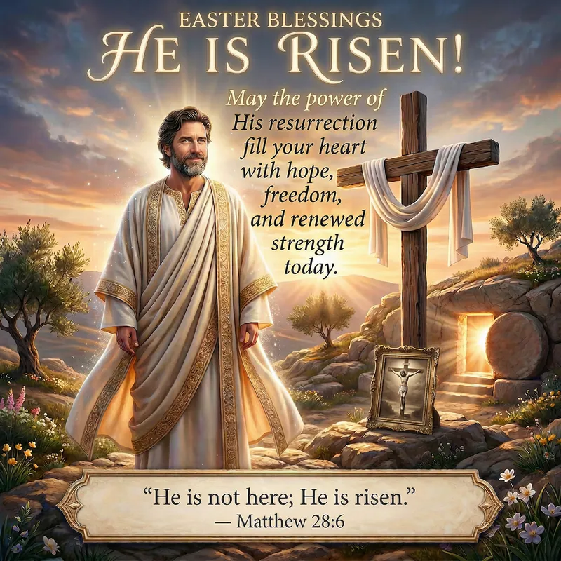 He is risen! May the power of His resurrection fill your heart with hope, freedom, and renewed strength today. “He is not here; He is risen.” — Matthew 28:6.