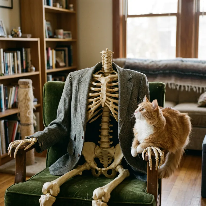 Headless Skeleton Next to Cat - Unsettling Encounter