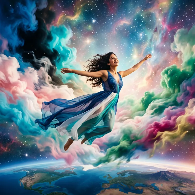 Mesmerizing Hispanic Woman Soaring High in the Celestial Dome