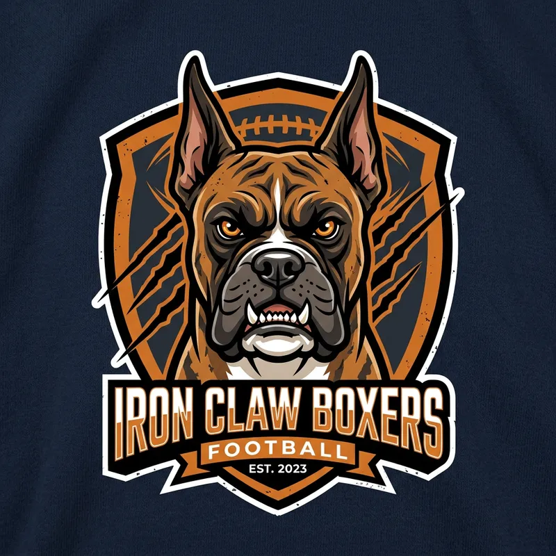 I want an angry looking boxer dog with cropped ears for a football team logo.