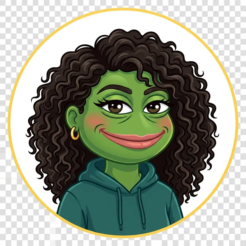 Pepe the Frog Girl Emoji with Beautiful Curly Hair