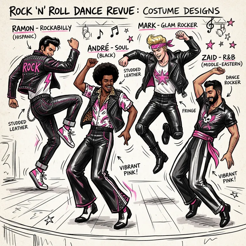 Iconic Rock 'n' Roll Male Dancers Costume Designs