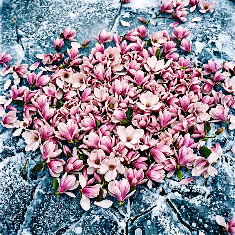 Stunning Scene of Pink Magnolia Flowers on Icy Water
