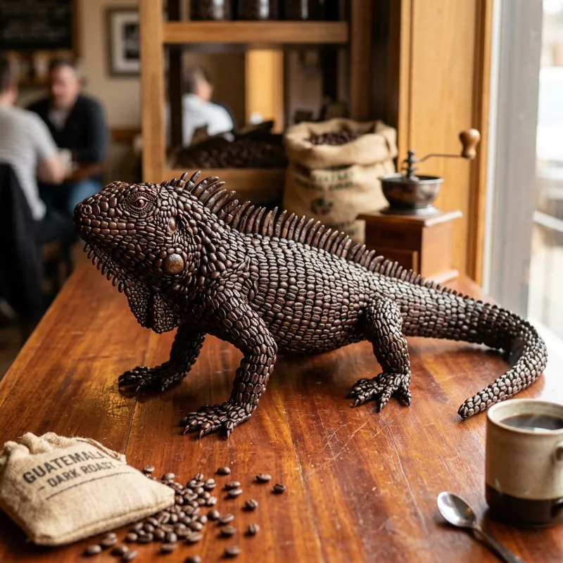 Iguana Made of Coffee Beans