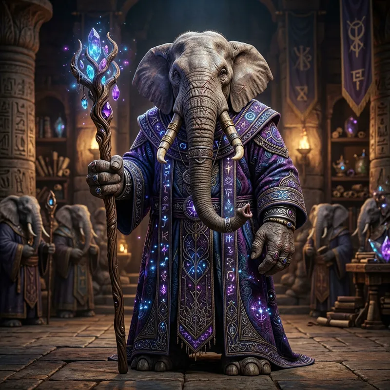 Imposing Loxodon Sorcerer: Majestic Fantasy Enchanter