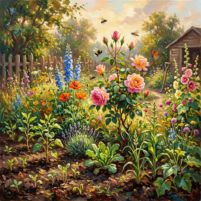 Impressionist Style Oil Painting of Plant Growth