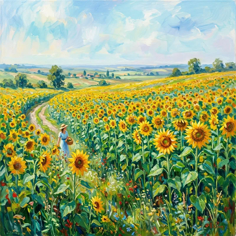 Impressionist Sunflower Field Painting