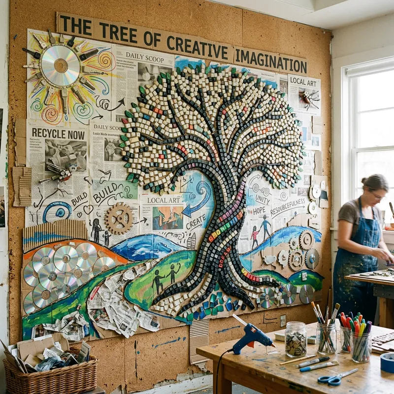 Creative Mural of Inspiration with Recycled Materials
