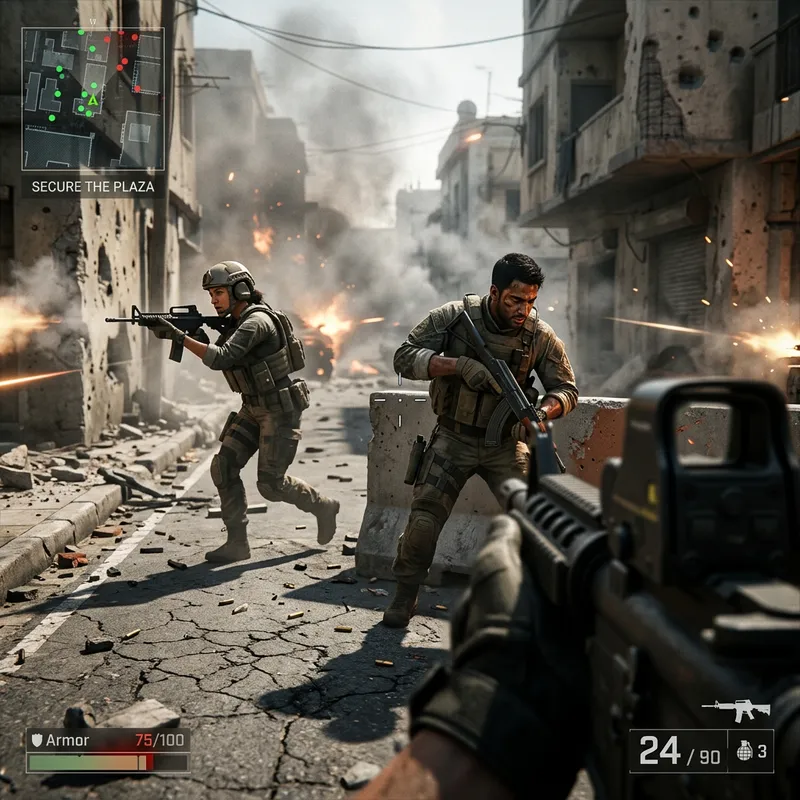High-Stakes First-Person Shooter Scene