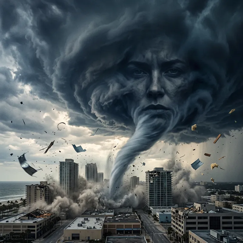 Intense Stormcloud: Female Form Unleashing Destruction on City