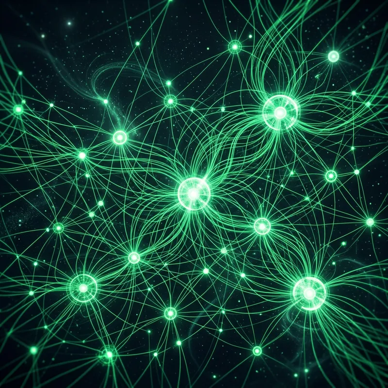Interconnected Green Network with Glowing Nodes