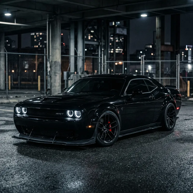 Generate a wallpaper displaying a black color, intimidating-looking sports car resembling a popular American muscle car.
