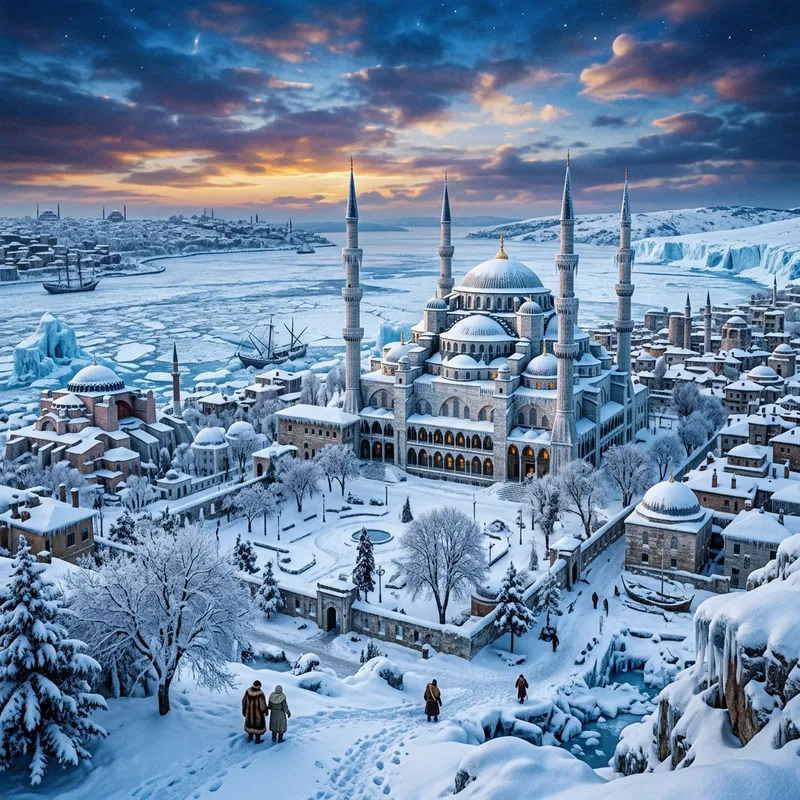 Istanbul in Ice Age: A Stunning Blue Mosque Landscape