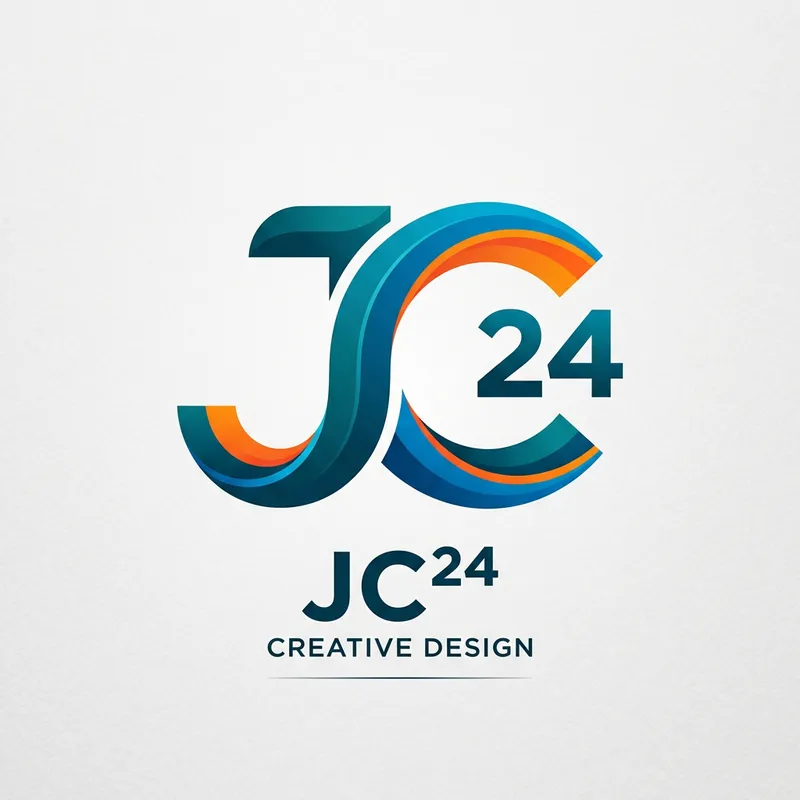 A logo design featuring the letters JC²⁴ in a creative and eye-catching arrangement.