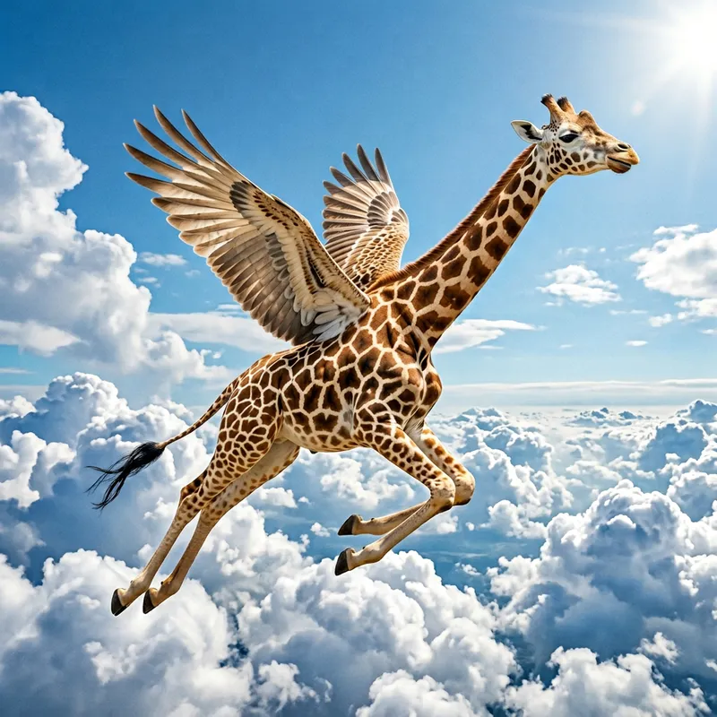 Jirafa Volando: A Surreal Flight in the Blue Sky
