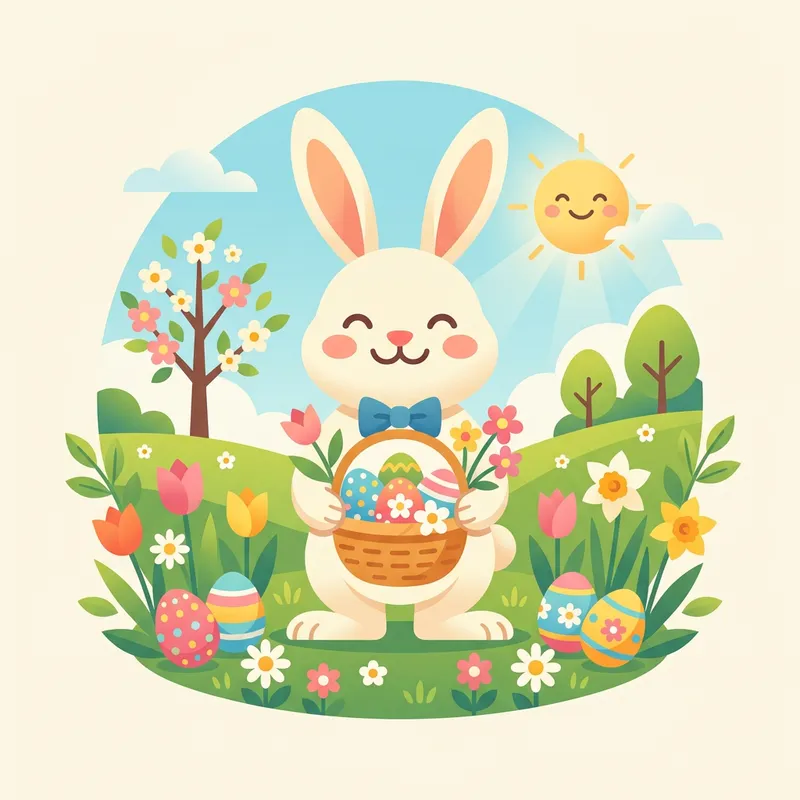 Create a textless image, vibrant and minimalist in style, intended to be sent to friends and family members in celebration of Easter. It should emit a feeling of joy, warmth, and festive Easter cheer. Please, no writing should be featured in the image.