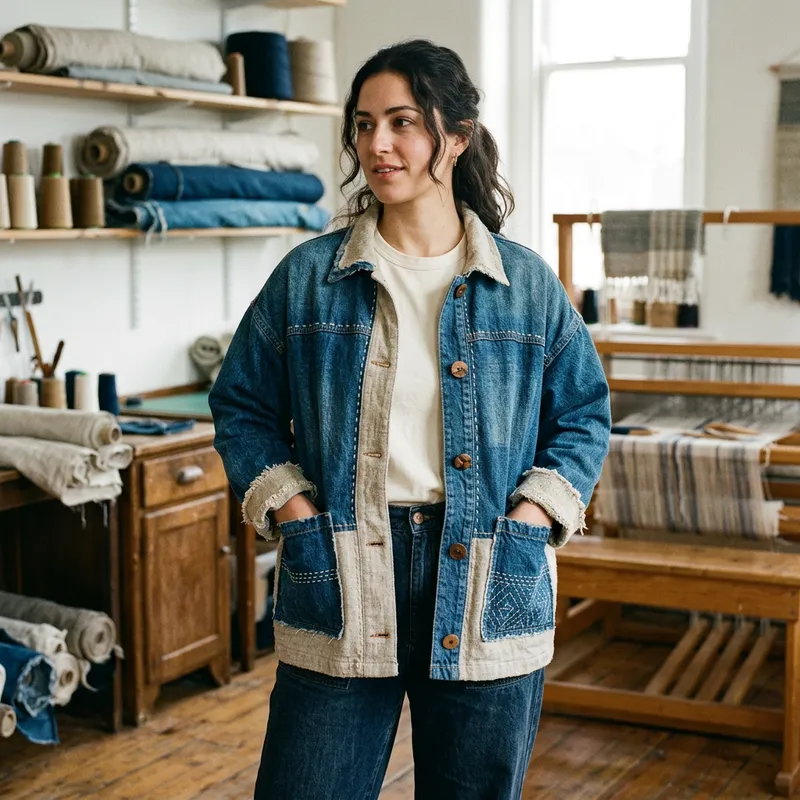 Contemporary Denim Shirt with Linen Accents