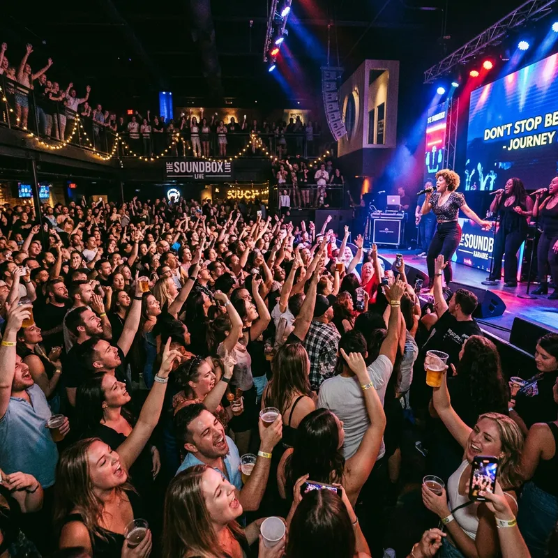 Large karaoke audience.