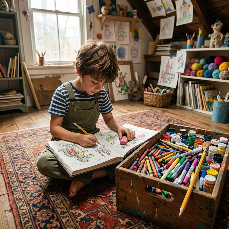 In a enchanting world, a boy named Leo is lost in his own realm of creativity. He has his big box brimming with an abundance of crayons in vibrant colors, markers with varied thickness, and paints with every possible shade of hue within his reach. His favorite, however, is an ordinary-looking pencil kept strikingly at the corner of his box. With the ability to erase and refine his mistakes, the graphite pencil gives him power to strive for perfection in every one of his ambitious drawings.