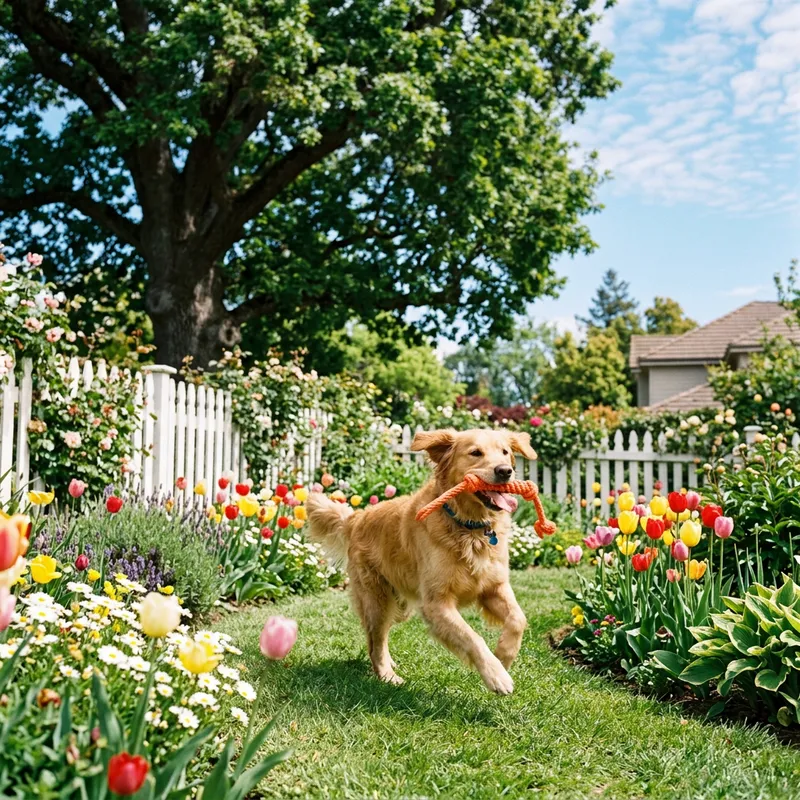 Colorful Garden Playtime with Lively Dog