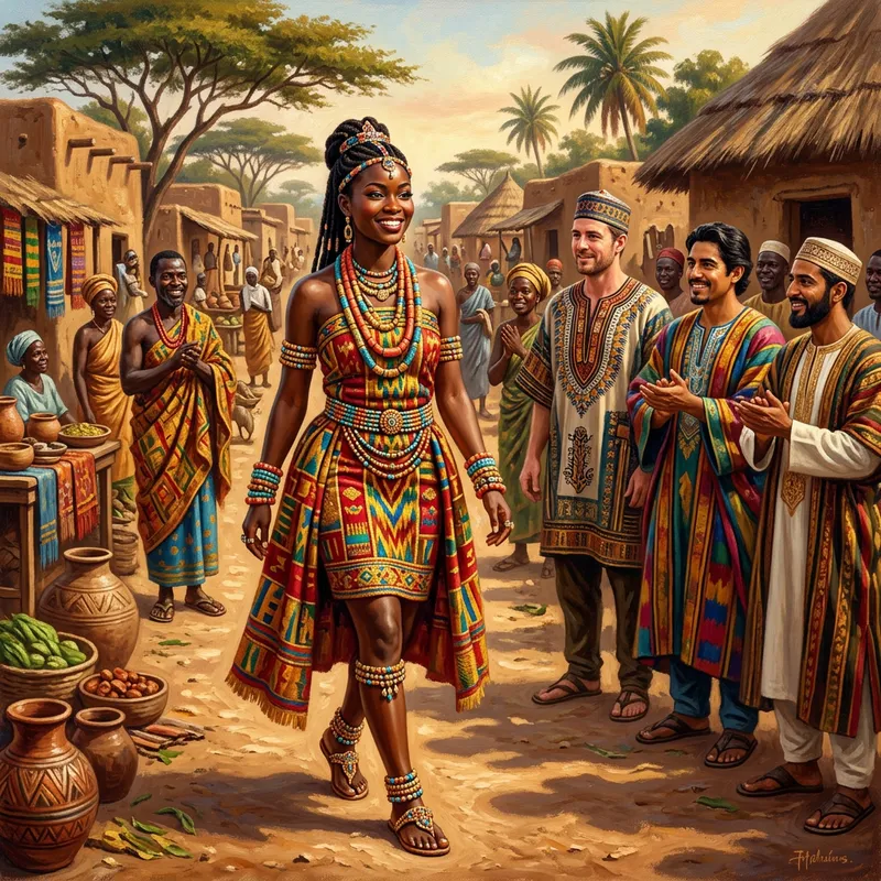 Majestic African Princess in Vibrant Village Scene
