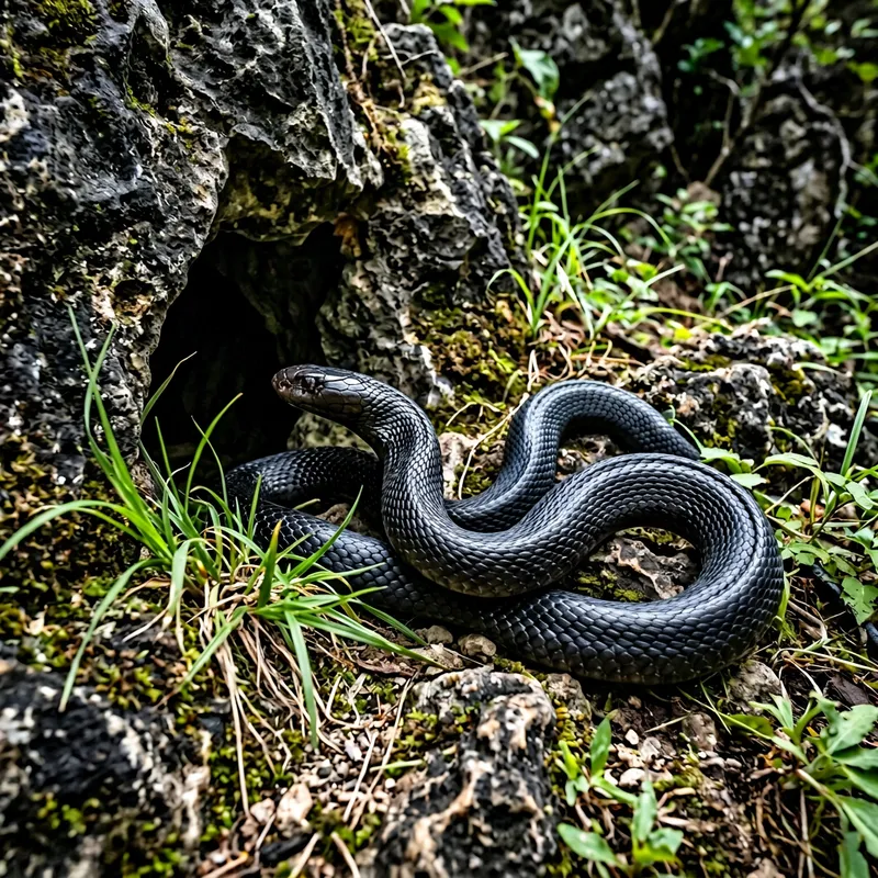 Discover the Majestic Black Snake in Enigmatic Cavern
