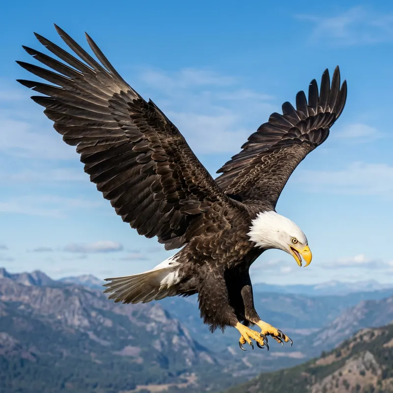 Detailed Closeup of Majestic Eagle Soaring in Blue Sky