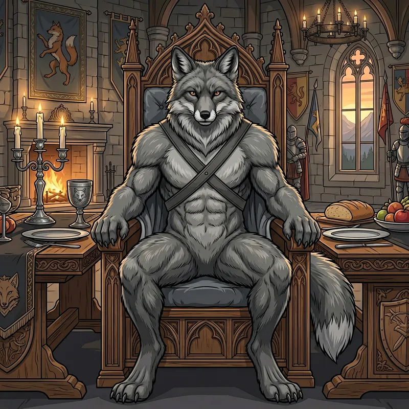 Majestic Grey Muscular Fox at Regal Table - Vector Illustration
