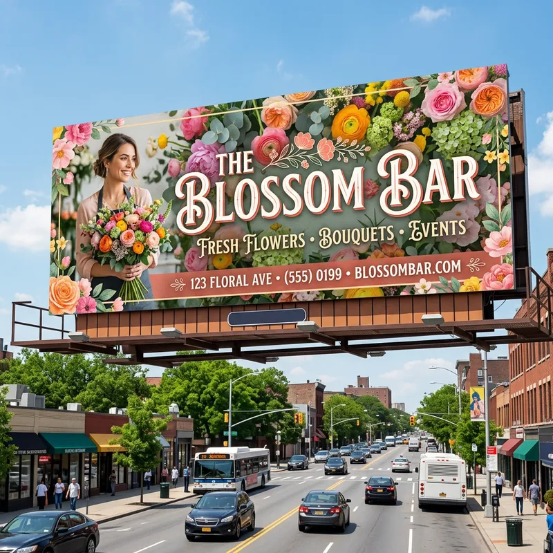 make billboard for a flower shop called the blossom bar.
