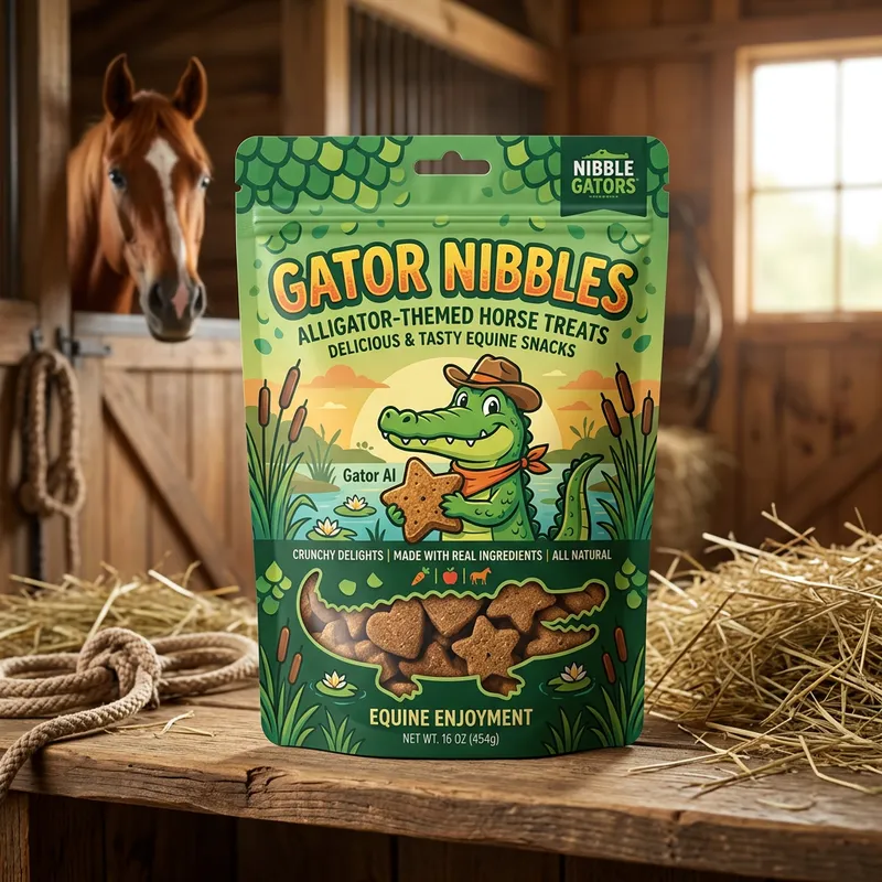 Make me a cute snack bag of horse treats and make it alligator themed.