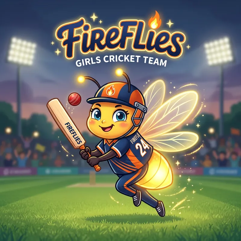 Make me a mascot for my girls cricket team named Fireflies for which we need to design a hoodie and I want a really cute mascot for that.
