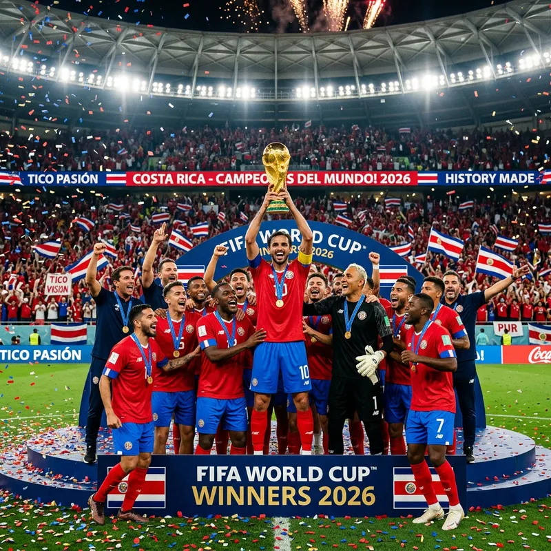 Make me an image of the Costa Rica men national team holding the World Cup trophy.