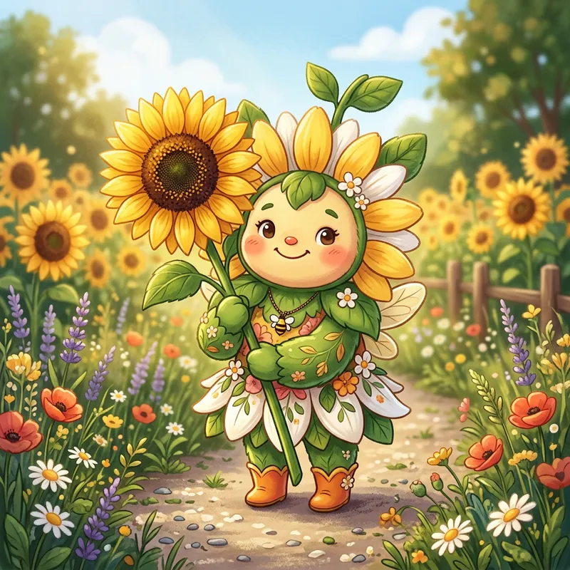 Original Prompt: ทำ mascot ธีมดอกไม้ น่ารักๆถือดอกทานตะวัน
