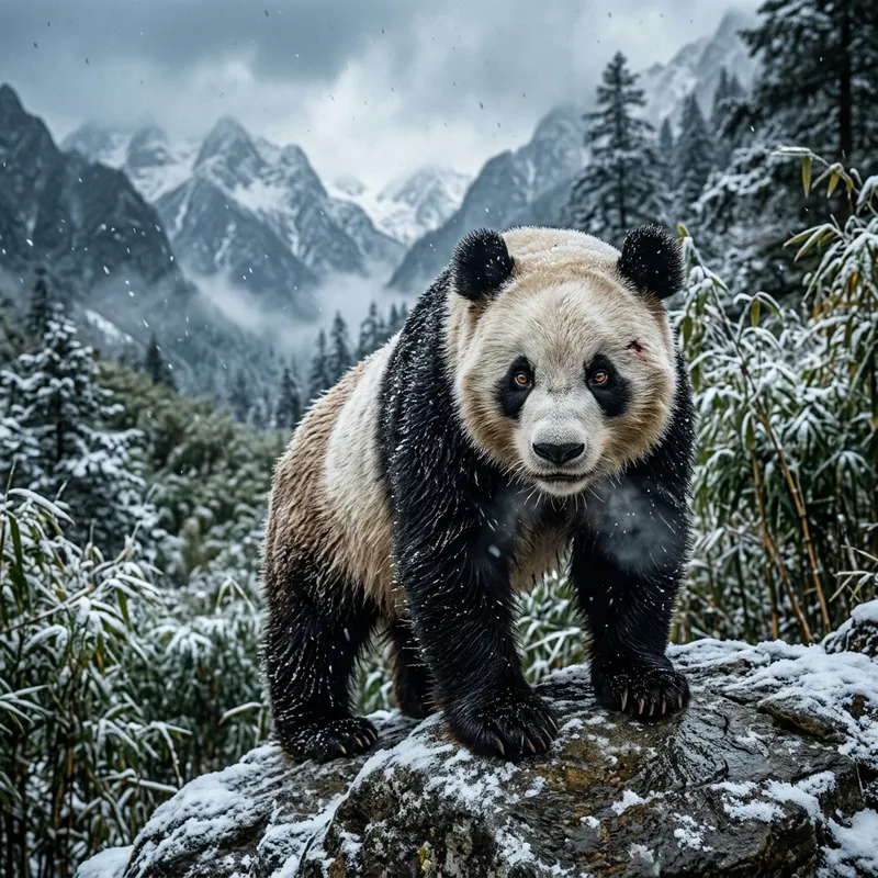 Mature and Ambitious Giant Panda in Realist Cinematic Style