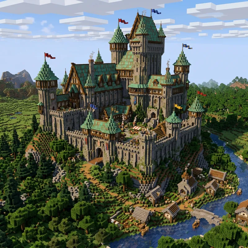Très Grand Château Médiéval with Copper Roof in Minecraft