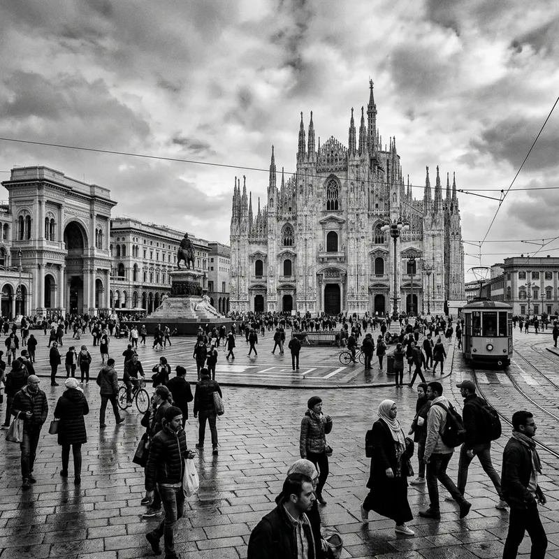 Milan's Main Square: A Black and White Perspective