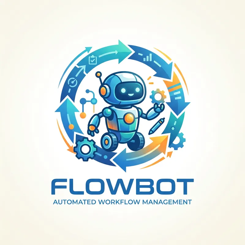 Design a logo that contains a vectorized mini robot that is automated for managing workflow.
