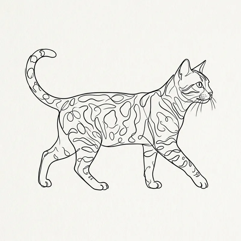 Minimalist Continuous Line Drawing of Bengal Cat