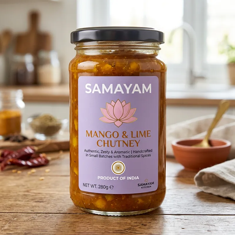 A minimalist food label for a nondescript brand, inspired by the vibrant colors of India. The label features clean lines and simple typography, reflecting a commitment to simplicity and efficiency. The background is a soft shade of purple, symbolizing elegance and creativity. A delicate pink lotus flower, a prominent symbol of purity and spirituality in Indian culture, is subtly incorporated into the design. The brand name is placed prominently at the top, using a modern and sleek font. The label also shows symbol of india, indicating its country of origin. The overall aesthetic is fresh and contemporary, capturing the essence of India while maintaining a modern feel. This design stands out on the shelves while evoking a sense of authenticity and quality.
