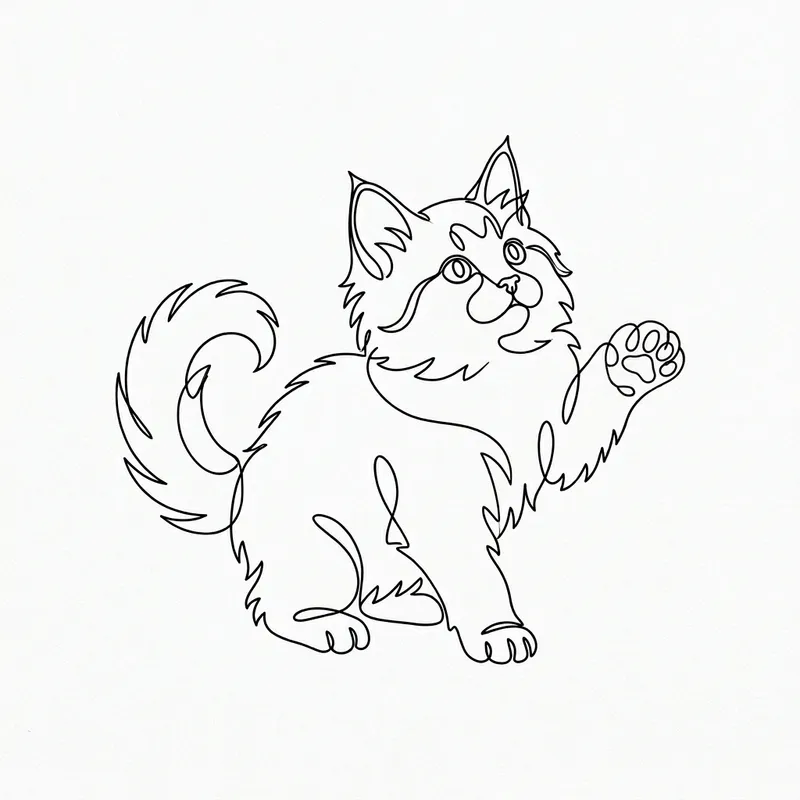 Single Line Drawing of a Playful Siberian Kitten