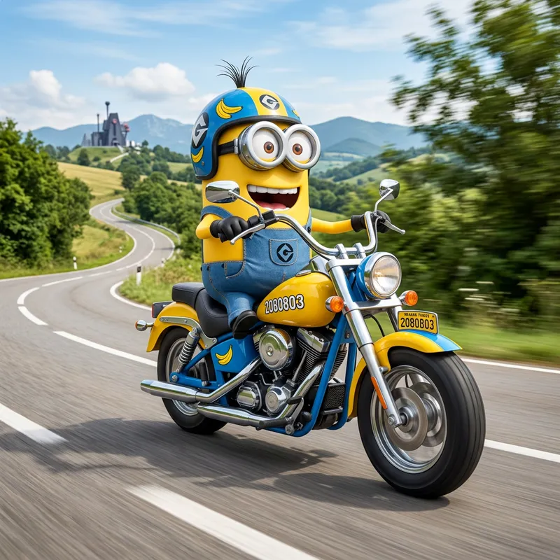Minion on Motorcycle: A Joyful Ride