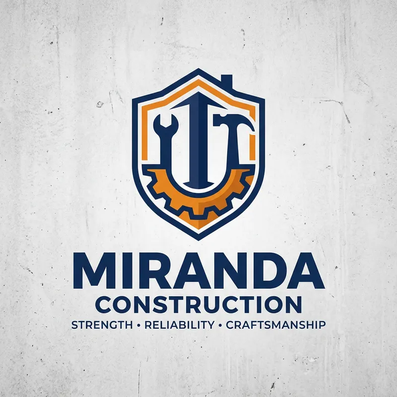 Design a logo for a construction company named 'Miranda Construction'. The logo should denote strength, reliability, and craftsmanship which are essential to construction industry. Consider incorporating elements associated with the construction such as gears, tools, or an abstract image of a building.