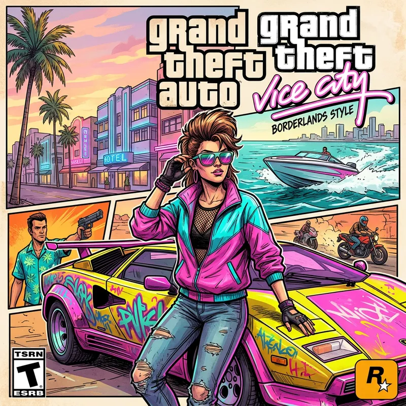 GTA Vice City Cover Art: Borderlands Style & Celshading