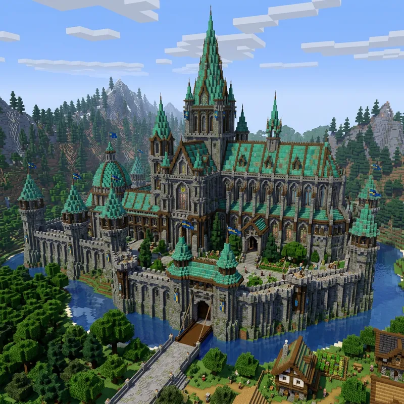 Modern High Definition Gothic Medieval Castle in Minecraft with Oxidized Copper Roofing