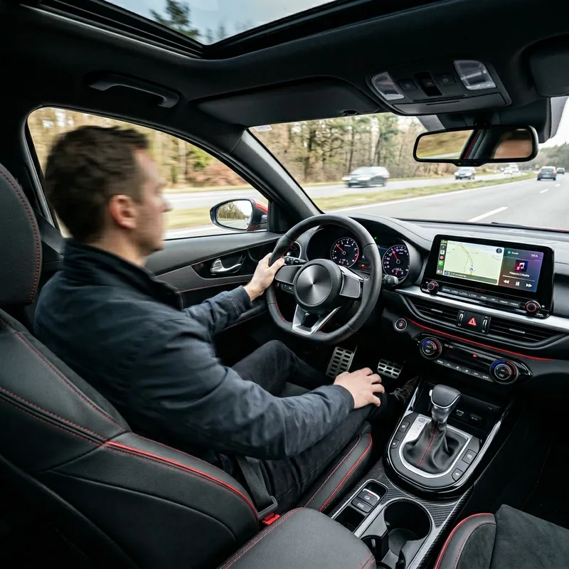 Create an image of the modern and sporty interior of a generic compact sedan car, inspired by the features typically found in stylish compact sedan models.