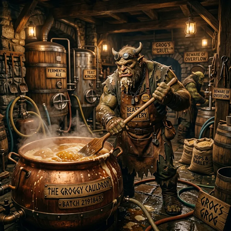 Monster brewing beer.
