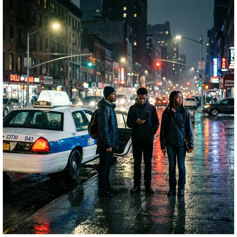 Moody Urban Night: Black Teenagers by Taxi Cab